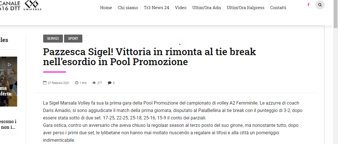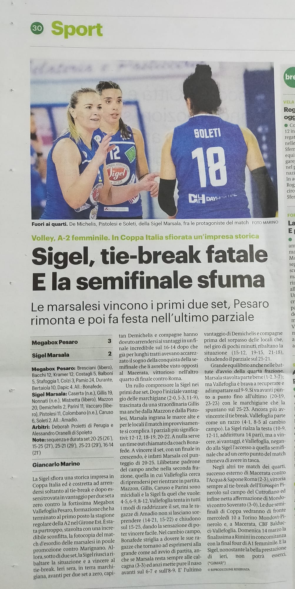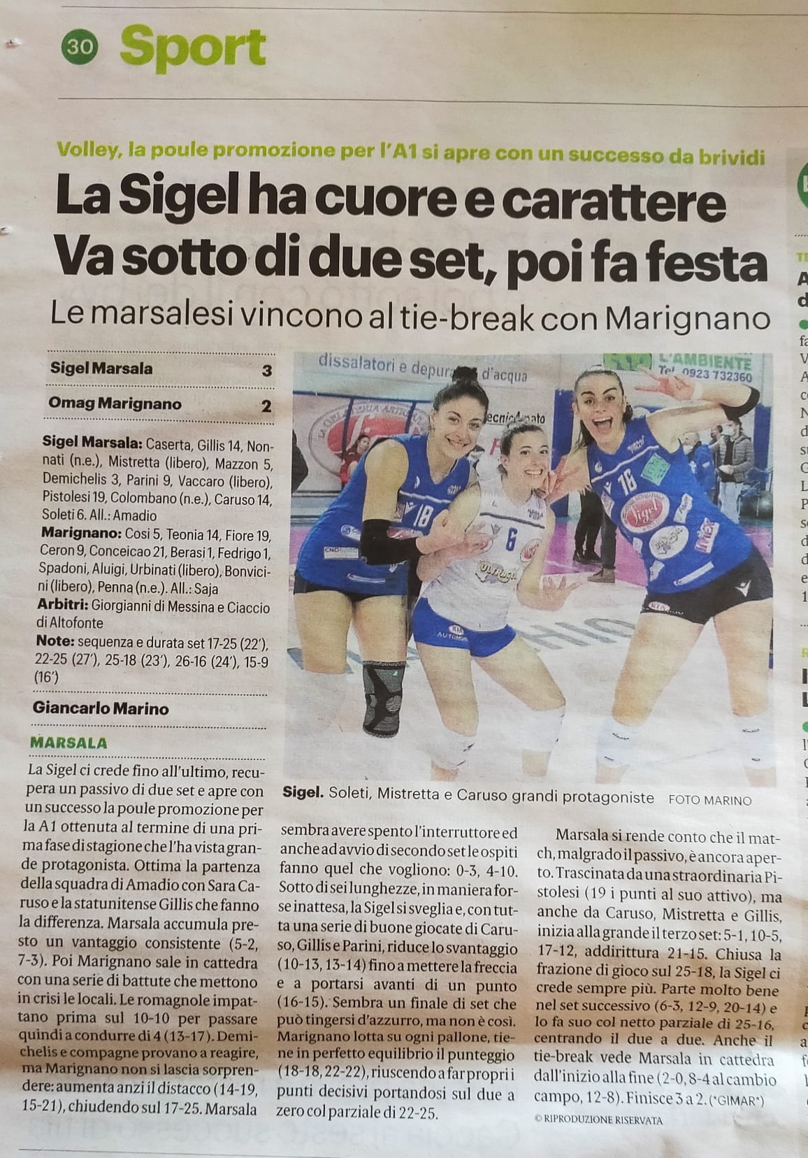 Dalle proprie colonne il “GdS” presenta ai propri lettori sportivi il prepartita di Sigel Marsala-Volley Soverato, con ambedue i sestetti tra poco a misurarsi al “PalaBellina” per la 4^giornata di Pool Promozione. All’interno le dichiarazioni pregara rese da coach Daris Amadio. In copertina un primo piano di Ilaria Demichelis, capitano e palleggiatrice di Marsala. Buona […]