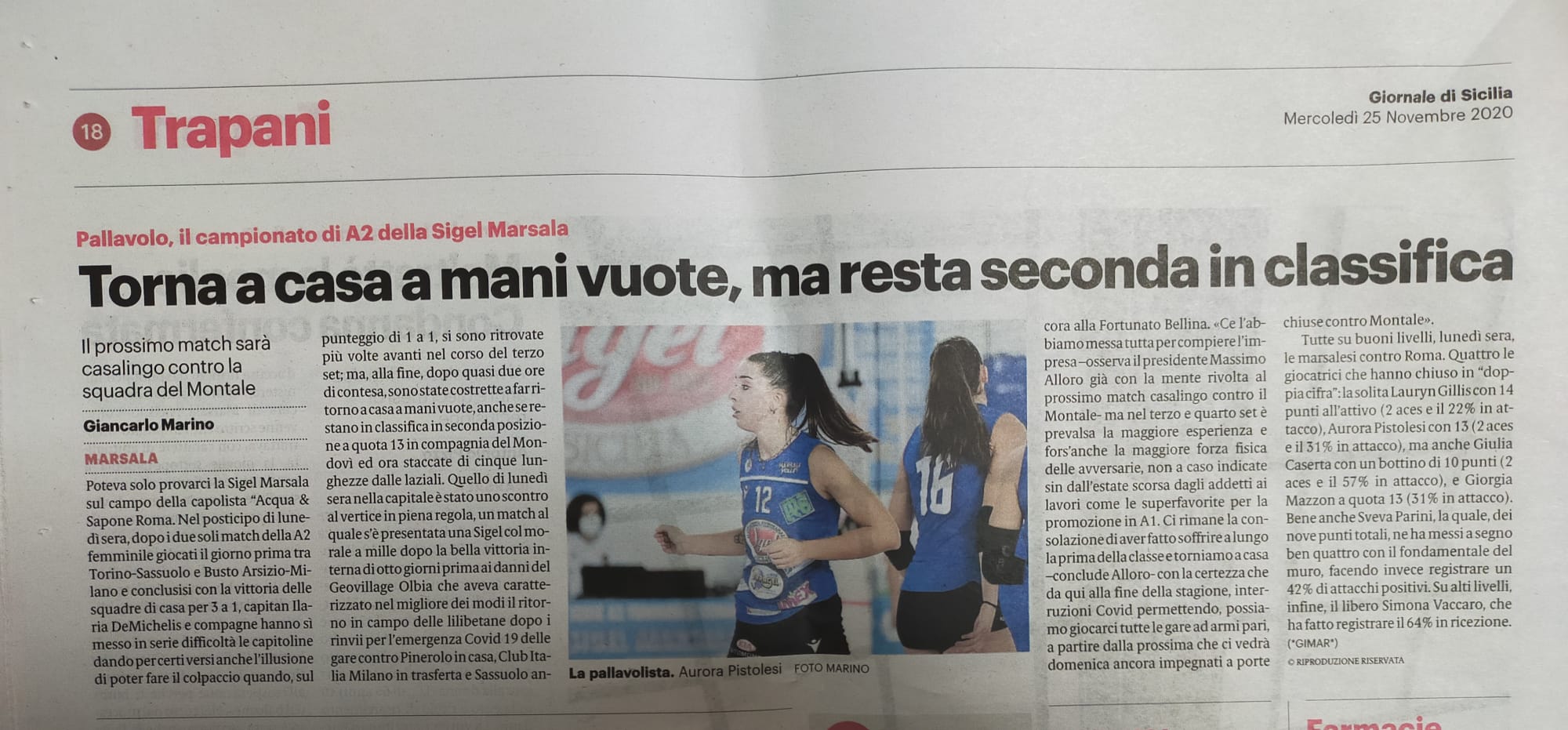 Il Giornale di Sicilia, in edicola oggi, fa il punto sulle gare che restano da recuperare (salite a quattro dopo l’ultimo rinvio in campionato contro il sestetto di Montale, ndr) dalle azzurre di coach Amadio. Interpellato da Giancarlo Marino, le parole all’interno del presidente Massimo Alloro sulla situazione del girone “Ovest” e sulla condizione di […]