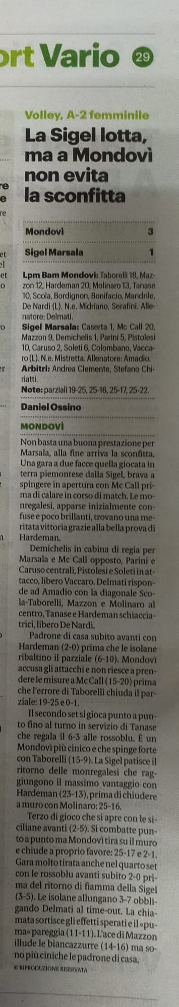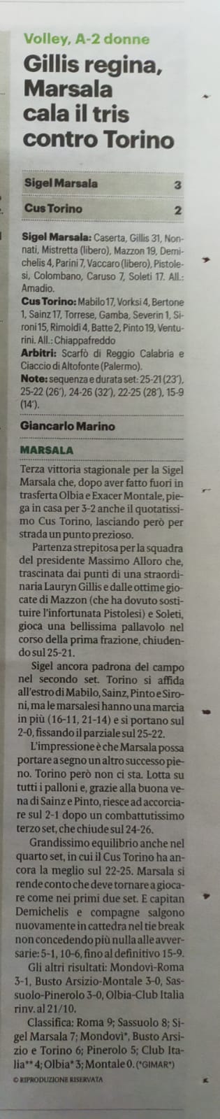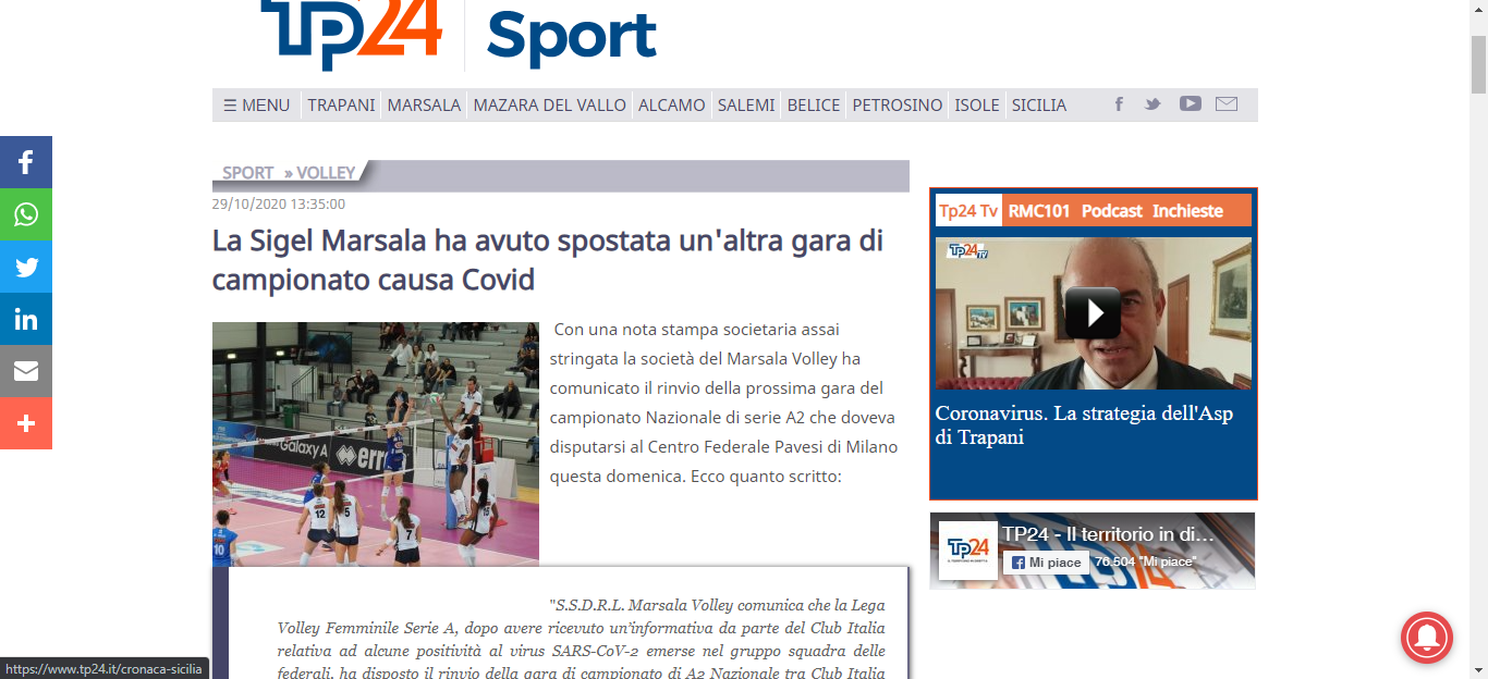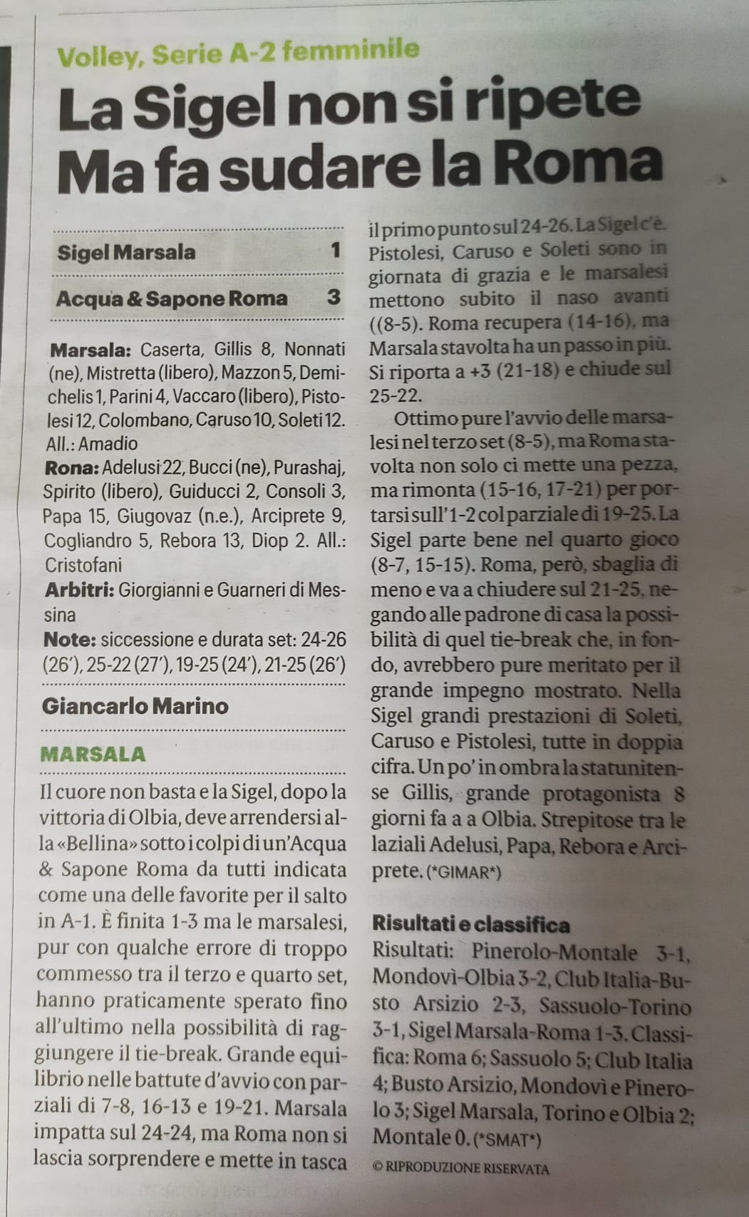 Il quotidiano online “LiveSicilia”, tra i primi in Sicilia per numero di pagine visitate e articoli letti, tratta di Sigel Marsala, concentrando l’oggetto del discorso sulle prossime date che aspettano le azzurre inserite nel girone “Ovest” di A2 e la situazione delle partite di campionato del girone di andata da recuperare a data da destinarsi dalla […]