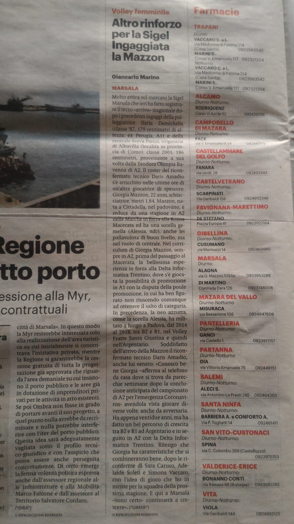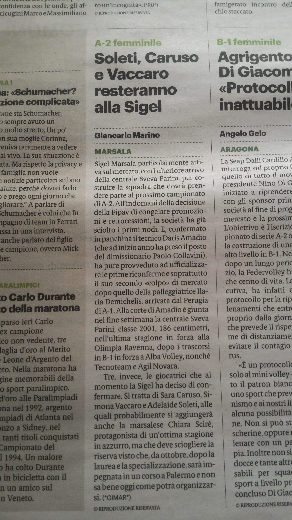 Il Giornale di Sicilia risalta il mercato azzurro fin qui condotto, come di consueto, attraverso un articolo. Il quotidiano, nel pezzo a firma del giornalista Giancarlo Marino, riassume le sei ufficializzazioni tra neo-sigelline che sono andate ad irrobustire il parco atlete della Sigel Marsala, società siciliana nuovamente ai nastri di partenza della prossima serie A2. […]