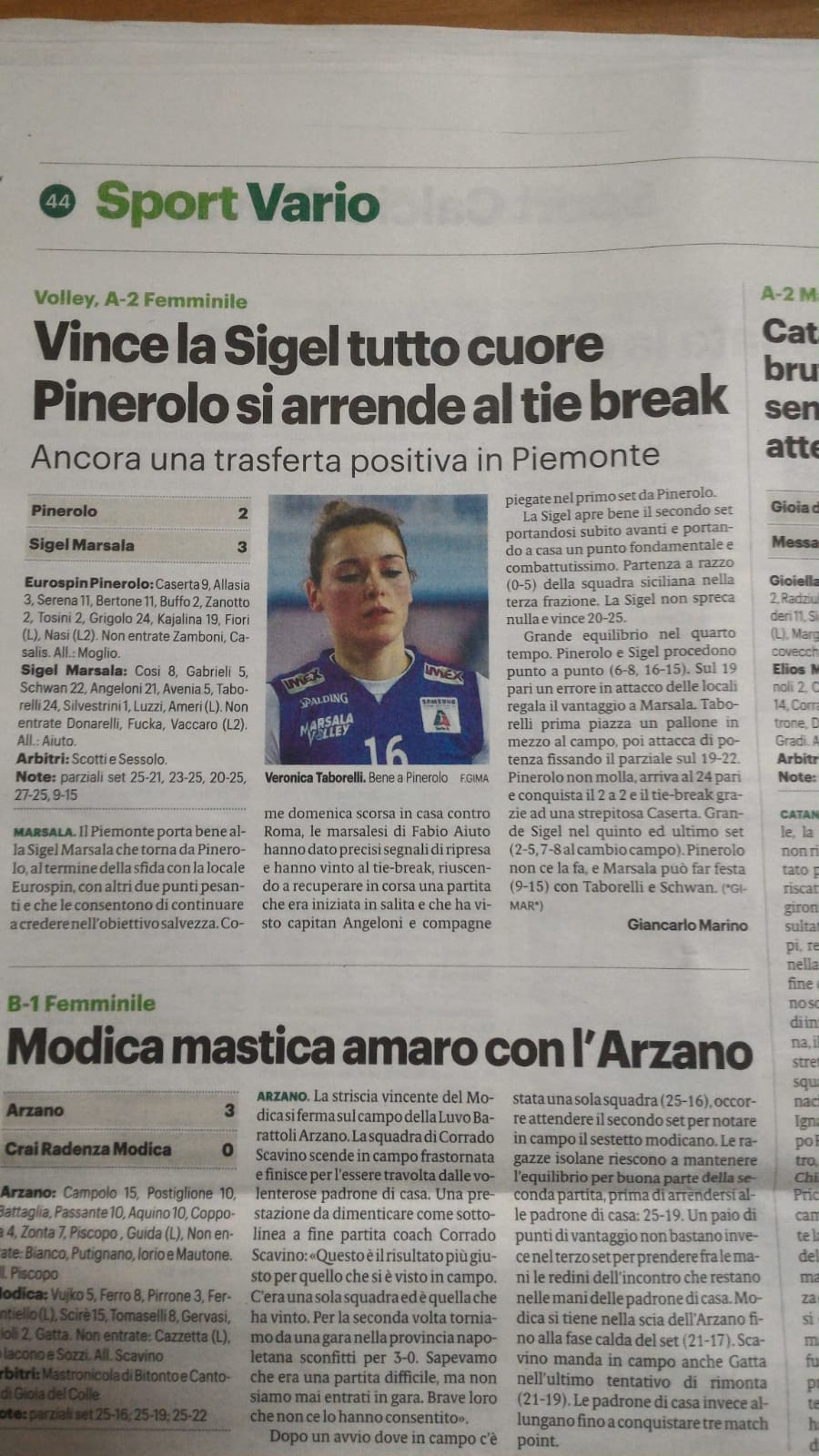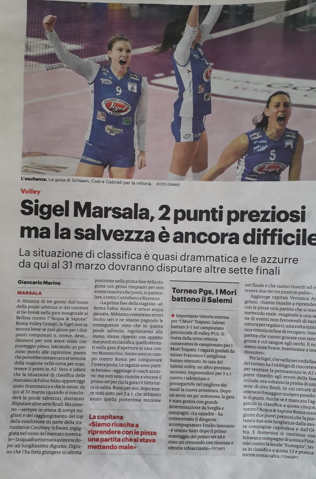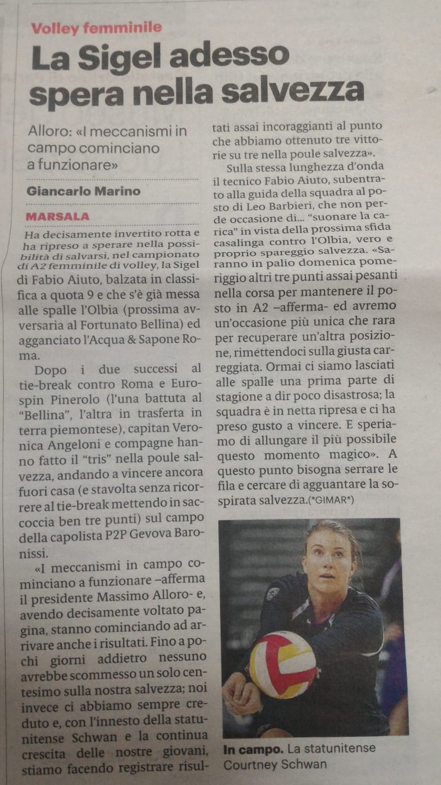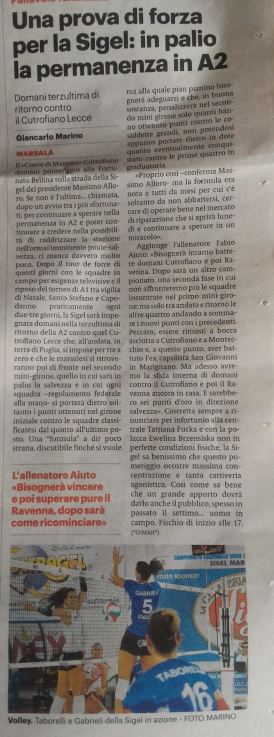 Un altro pezzo di Gianlcarlo Marino sulla Sigel Marsala Volley.