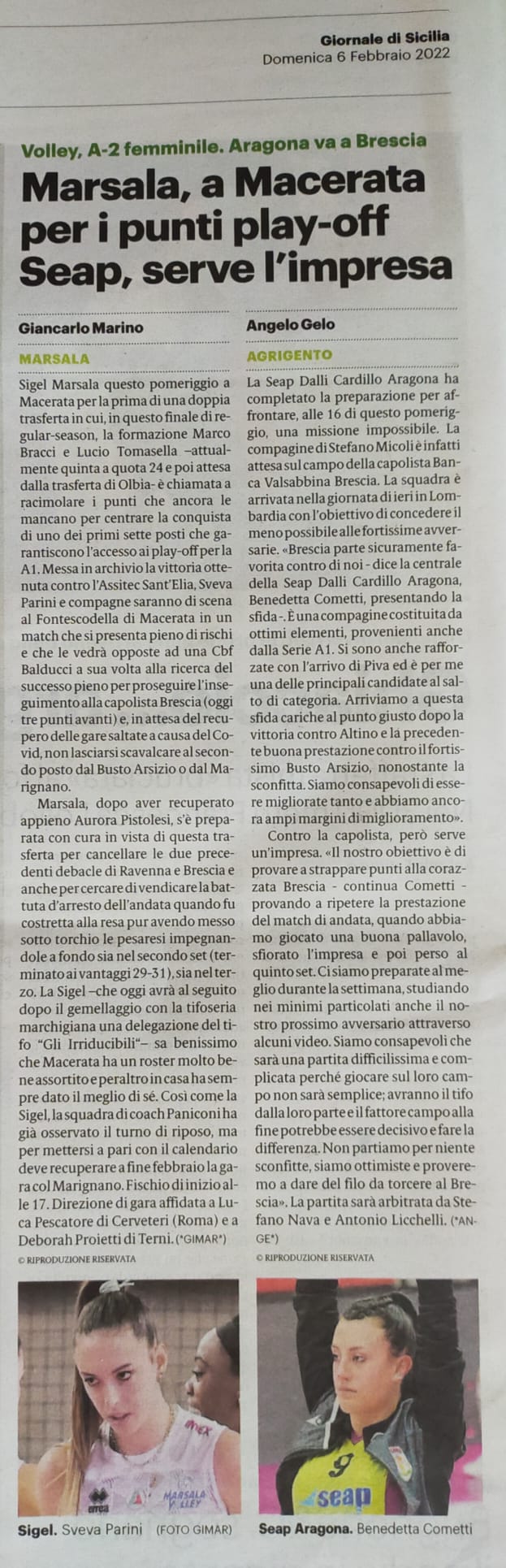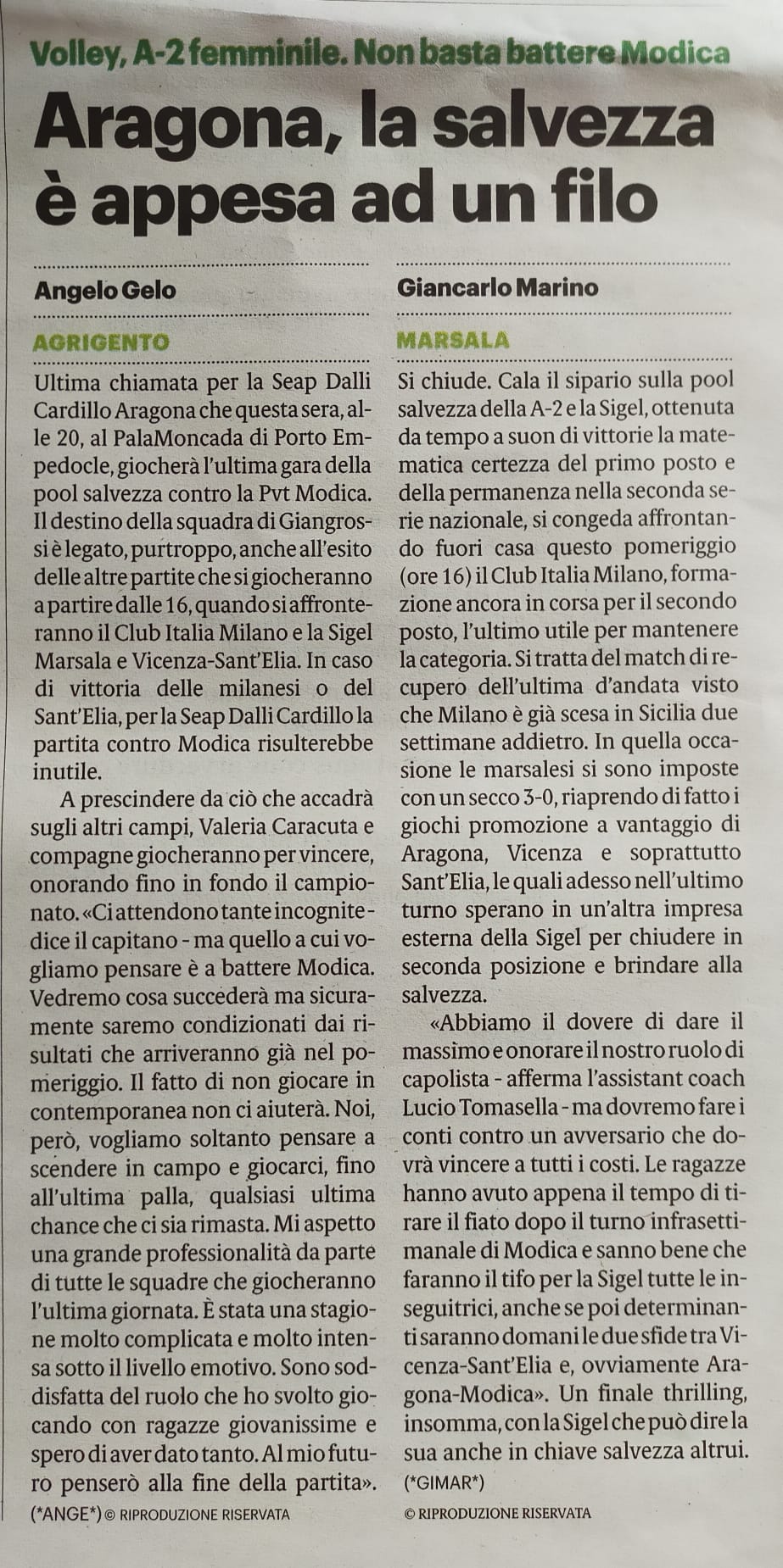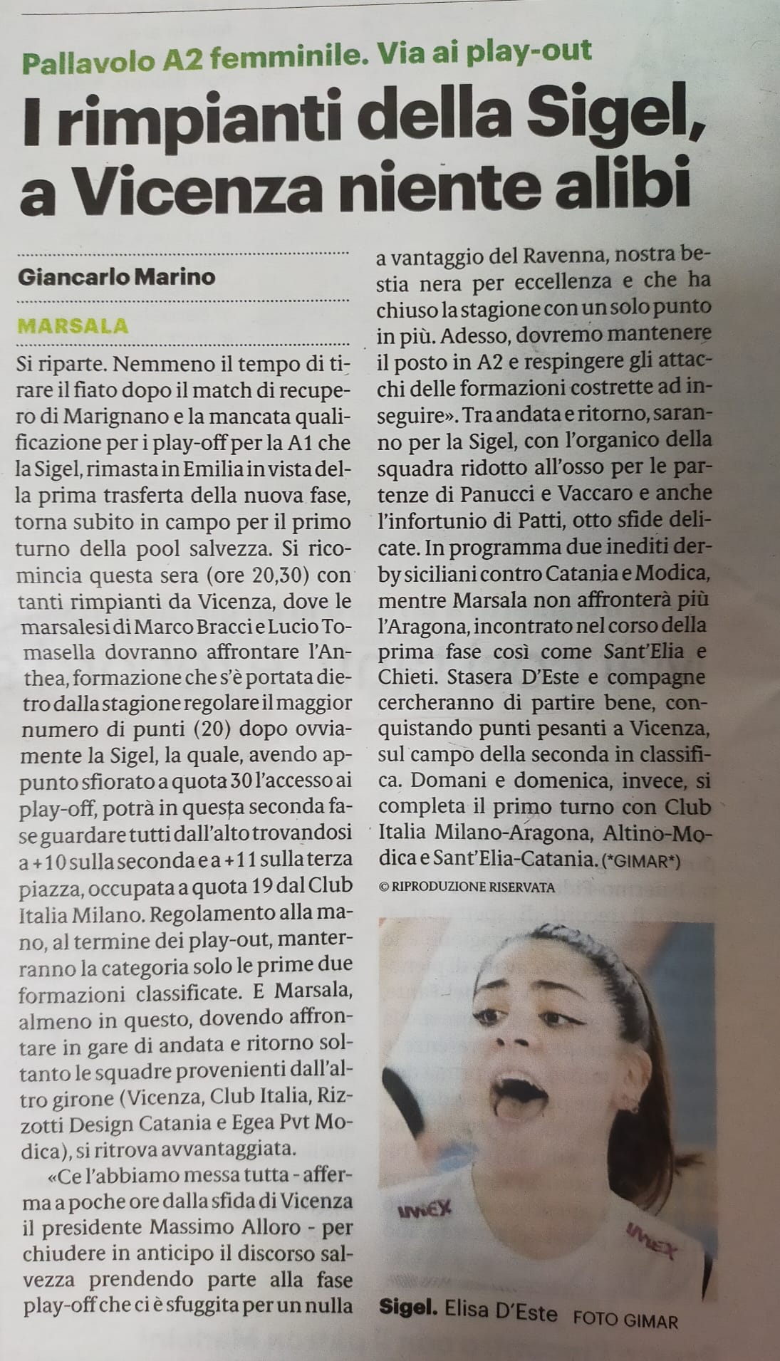 La testata regionale “Il Giornale di Sicilia” oggi in edicola ai suoi lettori sportivi propone una esclusiva intervista al direttore sportivo di Marsala Volley Maurizio Buscaino, il quale dirigente chiarisce a lettere cubitali quale sarà la nuova “Casa” della Prima Squadra che traslocherà la domenica in occasione delle gare interne al Pala SanCarlo. Non per questo, […]